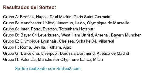 Lista de participantes: Villarreal, Liverpool, Chelsea, Napoli, Porto, Inter, Manchester United, Olympique de Marseille, Juventus, Benfica, Real Madrid, Roma, Olympique Lyonnais, Tottenham Hotspur, Borussia Dortmund, Sevilla, Schalke 04, Valencia, Everton, Fenerbahce, Bayer 04 Leverkusen, Atlético de Madrid, Lazio, Barcelona, Bayern Munchen, Ajax, Arsenal, Fulham, West Ham United, Manchester City, Milan, Paris Saint-Germain.
