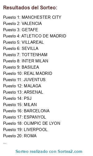 Resultados del sorteo: