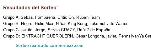 Lista de participantes: Jorge, Rubén Team, pakito, Sebas, Fombuena, Raúl 7 de España, Critic On, Lokomotiv de Waner, Negro, javier, Hulio Max, Niñas King Kong, César Longoria, PennsilvanYa CreW, Sergio CRAZY, EINTRACHT QUEROLERN.