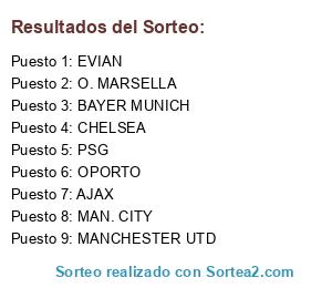 Resultados del sorteo: