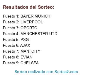 Resultados del sorteo: