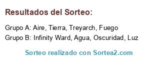Lista de participantes: Agua, Fuego, Oscuridad, Infinity Ward, Treyarch, Aire, Tierra, Luz.