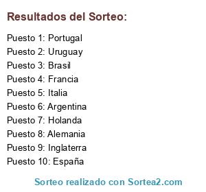 Lista de participantes: Uruguay, Portugal, Italia, España, Francia, Holanda, Brasil, Inglaterra, Argentina, Alemania.
