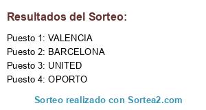 Lista de participantes: BARCELONA, VALENCIA, UNITED, OPORTO.
