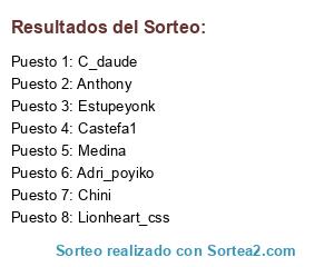 Lista de participantes: Lionheart_css, Estupeyonk, Chini, Anthony, Medina, C_daude, Adri_poyiko, Castefa1.