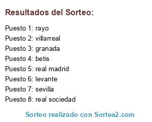 Lista de participantes: levante, rayo, villarreal, granada, sevilla, real madrid, real sociedad, betis.