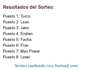 Lista de participantes: Turco, Endien, Max Power, Facha, Laser, Lean, Fran, Jairo.