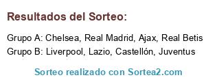 Lista de participantes: Lazio, Chelsea, Ajax, Liverpool, Real Madrid, Real Betis, Castellón, Juventus.