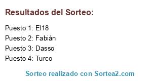 Lista de participantes: Dasso, Fabián, Turco, El18.