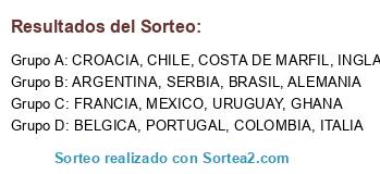 Lista de participantes: ITALIA, MEXICO, CHILE, URUGUAY, FRANCIA, SERBIA, ARGENTINA, INGLATERRA, CROACIA, BELGICA, COLOMBIA, BRASIL, COSTA DE MARFIL, ALEMANIA, PORTUGAL, GHANA.