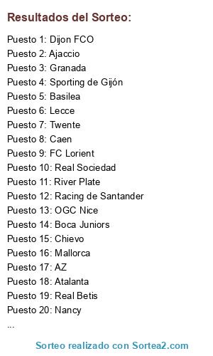 Lista de participantes: Racing de Santander, Atalanta, Real Betis, Caen, SC Heeverenveen, Real Sociedad, Evian, Granada, Lecce, Chievo, Levante, AZ, OGC Nice, Twente, Ajaccio, Mallorca, Dijon FCO, Nancy, Sporting de Gijón, FC Lorient, Boca Juniors, Basilea, River Plate, Novara.