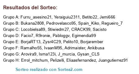 Lista de participantes: Juangutierrez91, Isma123i, CRACK99, Sacisto, Yeraiguiu2311, Pabloggv, IvaanM95, Facio7, Ramalho55, J_murcia, Stiwiedm27, Eliaasfernandez, Gysan_CLS, Pelito10, R9ronie, Furru_asesino21, Arovira9, Pedrovelasco95, Locobielsa89, Betito22, Pelizelli, Egimendia99, Borjarember, Bukana2808, BorjaRT13, Regueiro_7, Spain_Kiko, Adrimaister, Errol_mitchum, Jemi666, Zysr4C29, Ankibusa.