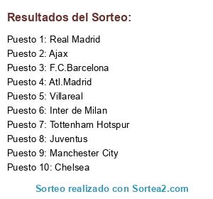 Lista de participantes: Manchester City, Ajax, F.C.Barcelona, Inter de Milan, Villareal, Chelsea, Atl.Madrid, Tottenham Hotspur, Real Madrid, Juventus.