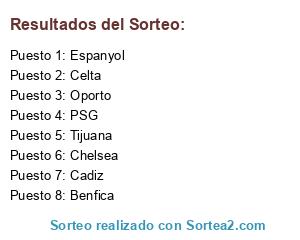 Lista de participantes: Celta, Oporto, Tijuana, Chelsea, Cadiz, Espanyol, Benfica, PSG.