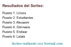 Lista de participantes: Aleuasini, Gimnasia, Líricos, Lalala, Endwar, Estudiantes.