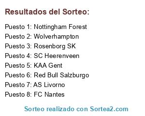 Lista de participantes: Rosenborg SK, SC Heerenveen, FC Nantes, AS Livorno, KAA Gent, Nottingham Forest, Wolverhampton, Red Bull Salzburgo.