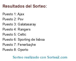 Lista de participantes: Psv, Sporting de lisboa, Oporto, Fenerbaçhe, Ajax, Galatasaray, Celtic, Rangers.