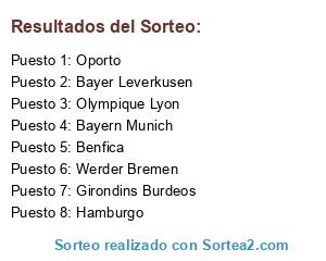 Lista de participantes: Bayern Munich, Girondins Burdeos, Werder Bremen, Oporto, Bayer Leverkusen, Hamburgo, Olympique Lyon, Benfica.