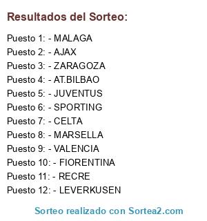 Lista de participantes: - ZARAGOZA, - ROMA, - LEVANTE, - AT.BILBAO, - FIORENTINA, - LEICESTER CITY, - NÁPOLES, - VALENCIA, - GIRONA, - SHEFFIEL, - BENFICA, - LEVERKUSEN, - SPORTING, - JUVENTUS, - GRANADA, - LIVERPOOL, - MARSELLA, - AJAX, - RECRE, - MALAGA, - M.UNITED, - TENERIFE, - CELTA, - REAL MADRID.
