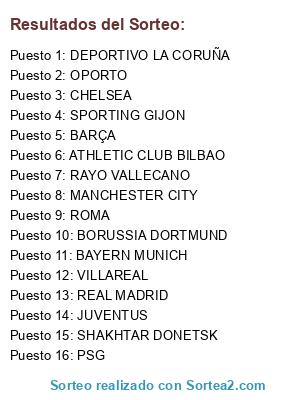 Lista de participantes: SHAKHTAR DONETSK, BORUSSIA DORTMUND, DEPORTIVO LA CORUÑA, SABADELL, GANADOR FIORE-JUVE, MANCHESTER CITY, ROMA, VILLAREAL.
