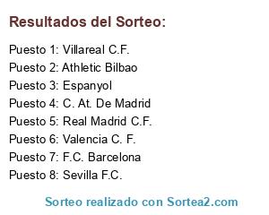 Lista de participantes: Real Madrid C.F., F.C. Barcelona, Valencia C. F., Villareal C.F., C. At. De Madrid, Sevilla F.C., Espanyol, Athletic Bilbao.