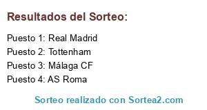 Lista de participantes: Real Madrid, Málaga CF, AS Roma, Tottenham.
