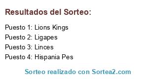 Lista de participantes: Ligapes, Lions Kings, Hispania Pes, Linces.