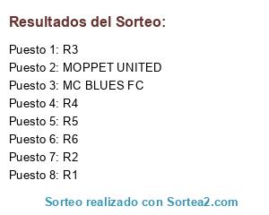 Lista de participantes: MOPPET UNITED, MC BLUES FC, R1, R2, R3, R4, R5, R6.