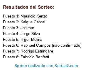 - Puesto 6: Raphael Campos (não confirmado)