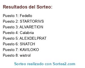 Lista de participantes: STARTORIVS, SNATCH, ALEXDELPRAT, ALVARETION, KAVILOKO, wistrol, Fedello, Calabria.