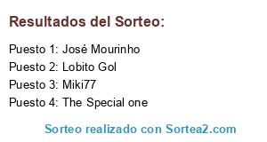 Lista de participantes: José Mourinho, Miki77, Lobito Gol, The Special one.
