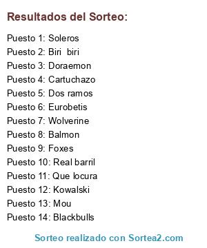 Lista de participantes: Warriors, Real batman, Fran, Que locura, Rivero, Mou, Eurobetis, Pasa directo.