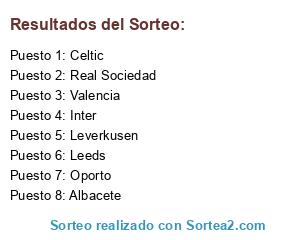 Lista de participantes: Albacete, Celtic, Leeds, Inter, Oporto, Real Sociedad, Valencia, Leverkusen.