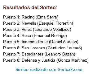 Resultados del sorteo: