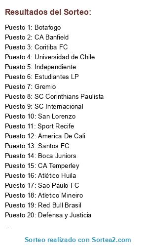 Lista de participantes: Sao Paulo FC, Santos FC, Boca Juniors, SC Internacional, Atletico Mineiro, San Lorenzo, Cruzeiro EC, America De Cali, ACF Chapecoense, Atletico Paranaense, Botafogo, Estudiantes LP, Gremio, CA Temperley, Rosario Central, SC Corinthians Paulista, Red Bull Brasil, Sport Recife, Junior, Millonarios, Ponte Preta, Atlético Huila, CA Banfield, CSD Colo Colo, EC Vitoria, Coritiba FC, Defensa y Justicia, Independiente, Santa Fe, Universidad de Chile.