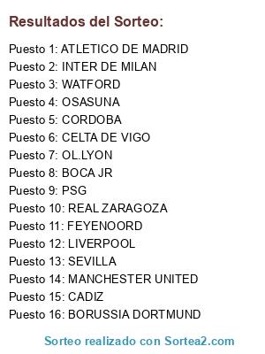 Lista de participantes: PSG, FEYENOORD, CORDOBA, CELTA DE VIGO, INTER DE MILAN, CADIZ, BORUSSIA DORTMUND, WATFORD, ATLETICO DE MADRID, MANCHESTER UNITED, REAL ZARAGOZA, OL.LYON, BOCA JR, LIVERPOOL, SEVILLA, OSASUNA.