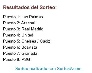 Lista de participantes: Granada, Real Madrid, Las Palmas, Boavista, Arsenal, PSG, United, Chelsea / Cadiz.