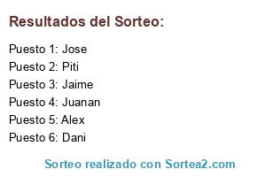Lista de participantes: Jose, Jaime, Dani, Juanan, Alex, Piti.