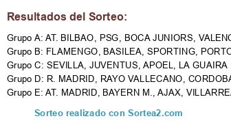 Lista de participantes: PORTO, PSG, LA GUAIRA, GIJON, CORDOBA, R. MADRID, BOCA JUNIORS, BASILEA, AT. MADRID, AT. BILBAO, BAYERN M, VILLARREAL, AJAX, RAYO, FLAMENGO, VALENCIA, SEVILLA, BETIS, JUVENTUS, APOEL.
