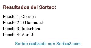 Lista de participantes: Man U, Tottenham, B.Dortmund, Chelsea.