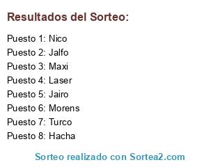 Lista de participantes: Jalfo, Jairo, Laser, Nico, Hacha, Morens, Maxi, Turco.