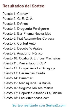 Resultados del sorteo: