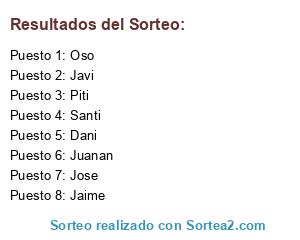 Lista de participantes: Oso - Javi, Piti - Santi, Dani - Juanan, Jose - Jaime.