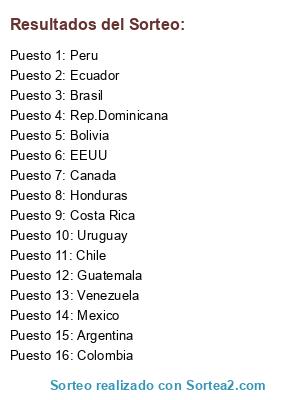 Lista de participantes: Argentina, Brasil, Bolivia, Colombia, Chile, Ecuador, Peru, Uruguay, Venezuela, Mexico, EEUU, Guatemala, Honduras, Canada, Rep.Dominicana, Costa Rica.