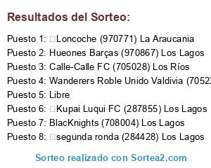Lista de participantes: 1. ✦✦✦Elemental Dragons (975005, 2. ✦C.S.D Colo - Colo (703572) , 3. ✦C.D. Josefina Antonia (707024) , 4. ★☆✦✦Toros Osorno Futbol Club (270296), 5. Night_Club F.C (974732), 6. ✦Purén Etílico F.C. (286825), 7. ✦✦✦Hueones Barças (970867), 8. ★REAL CAÑITAS F.C. (1234689).