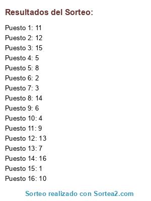 Lista de participantes: 1, 2, 3, 4, 5, 6, 7, 8, 9, 10, 11, 12, 13, 14, 15, 16.