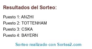 Lista de participantes: CSKA, ANZHI, TOTTENHAM, BAYERN.