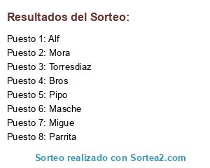 Lista de participantes: Pipo, Bros, Parrita, Alf, Migue, Mora, Torresdiaz, Masche.