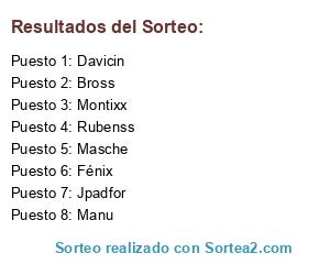Lista de participantes: Davicin, Rubenss, Montixx, Fénix, Bross, Masche, Jpadfor, Manu.
