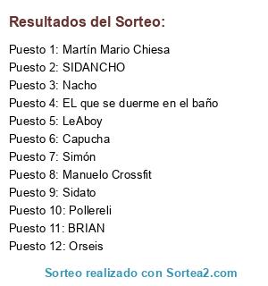 Lista de participantes: SIDANCHO, Manuelo Crossfit, Capucha, Nacho, LeAboy, Pollereli, Orseis, BRIAN, EL que se duerme en el baño, Simón, Sidato, Martín Mario Chiesa.